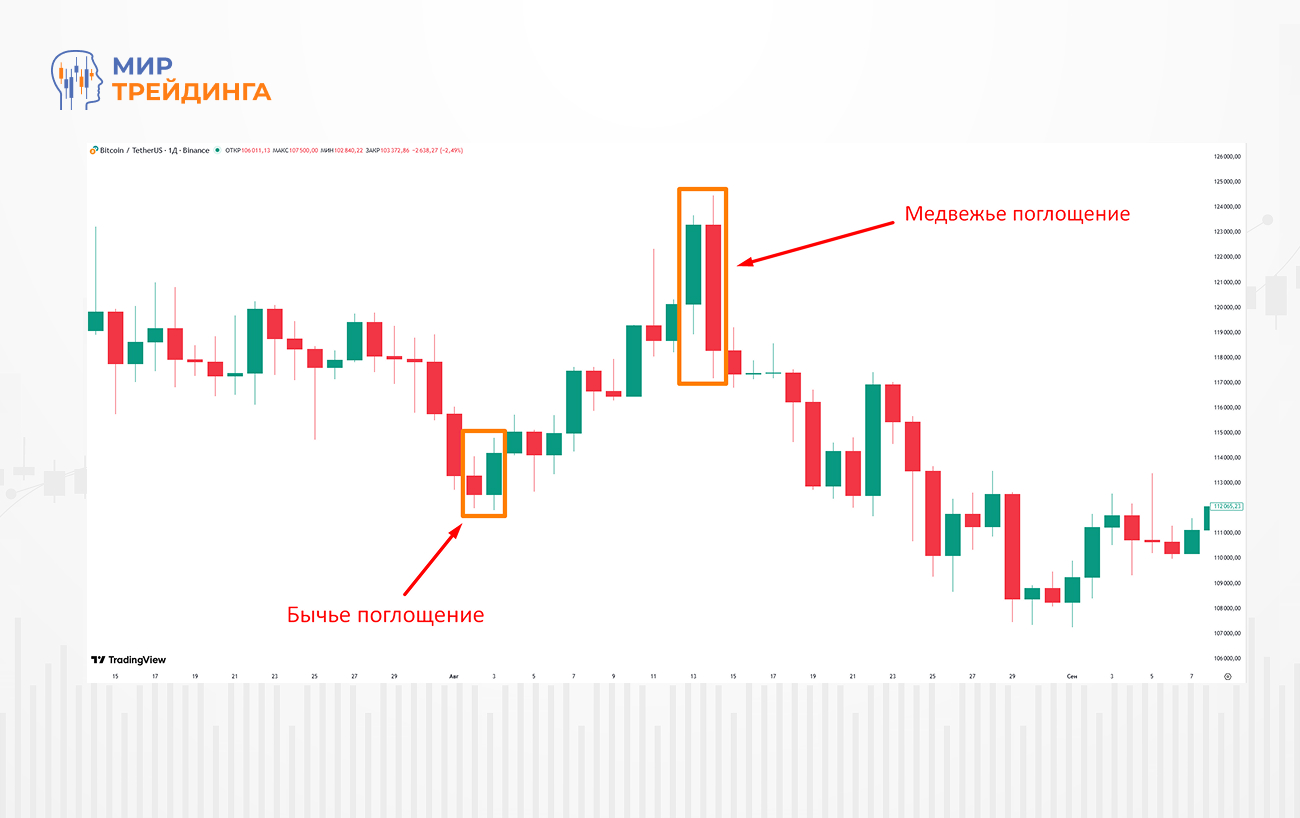 Поглощение (Bullish / Bearish Engulfing) – сигнал разворота тренда