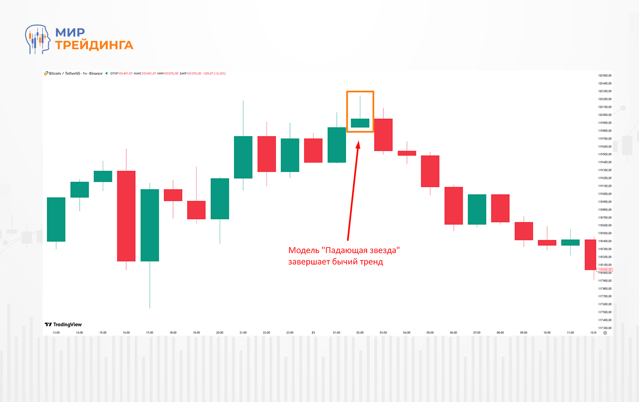 Рис.7 Модель Падающая звезда в конце бычьего тренда