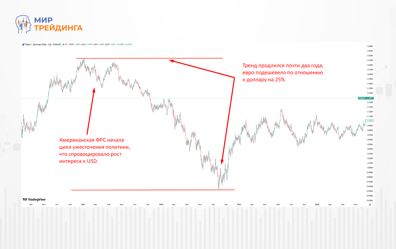 Рис.1 Тренд большого масштаба после смены политики ФРС