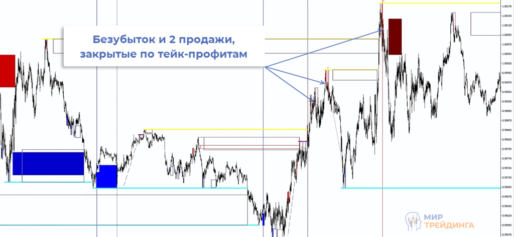 В завершающий день воркшопа работа велась только по EURUSD и AUDUSD. По EURUSD неудачным был только первый сигнал, половина закрылась по Сейфу, остаток – по стопу, в итоге получили безубыток. Оставшиеся сделки закрывались после ложного пробоя кластеров и брался в работу откат до уровня 50%. Схожий сценарий был реализован по AUDUSD.