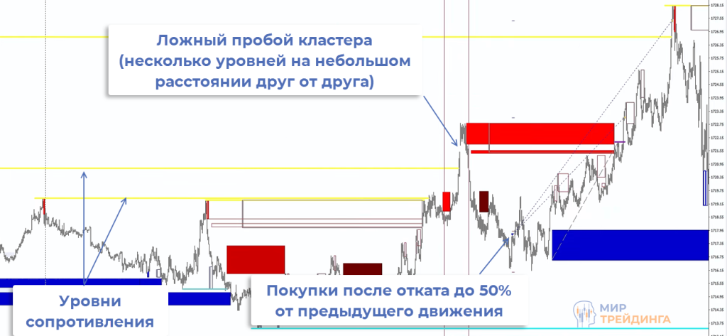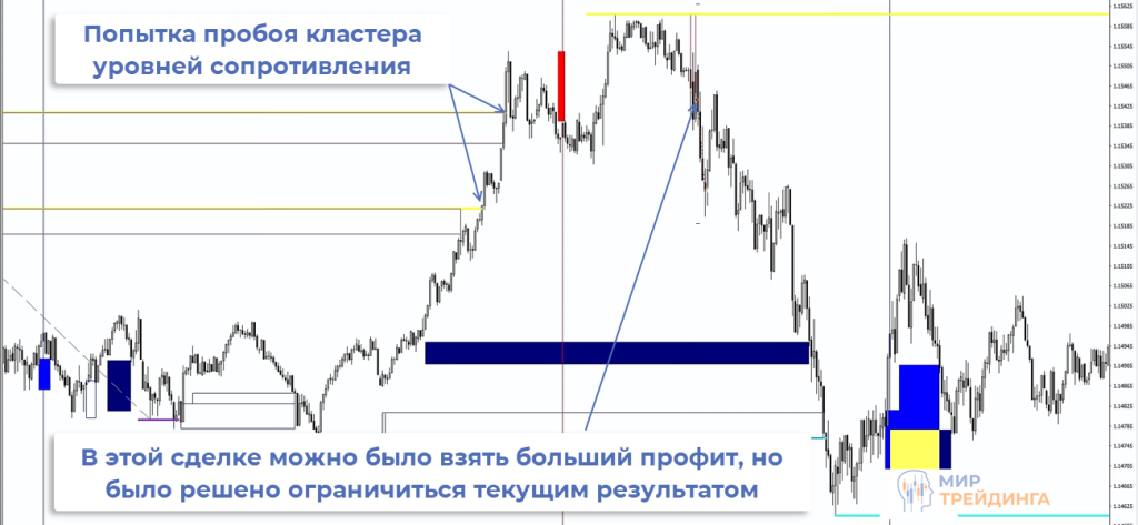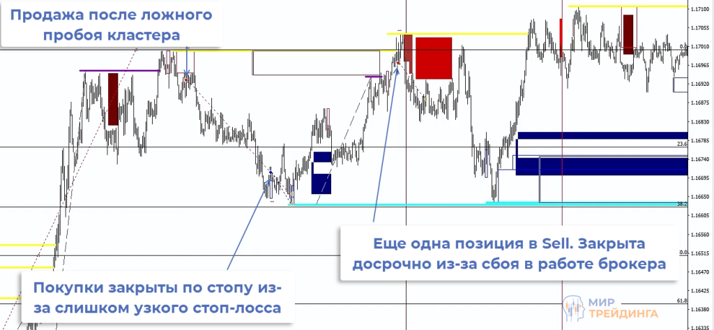 - продажи после ложного пробоя кластера принесли 300 пипсов, стандартная отработка одного из паттернов;