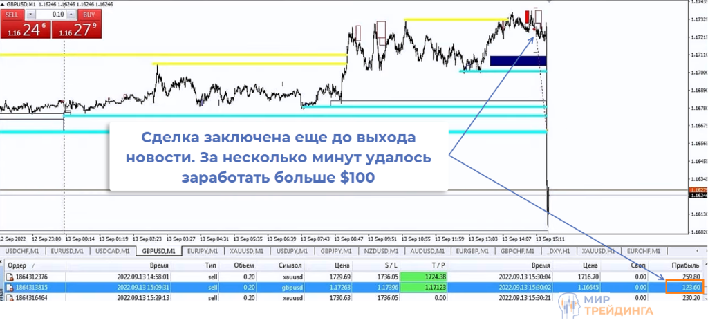 - позже получили базовую точку входа, что дало еще 100 пипсов прибыли.