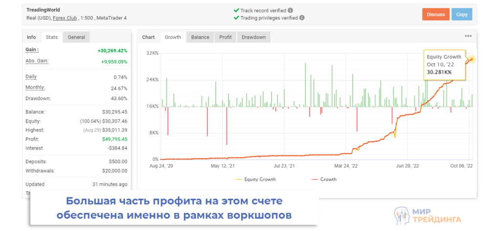 На этом же сайте есть доходность по месяцам. Можете засечь каким рост был в октябре до воркшопа и каким он будет после онлайн-торговли.