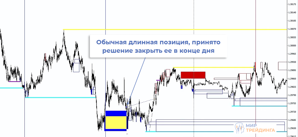 - GBPUSD. Здесь ограничились 179 пипсами прибыли хотя можно было держать сделку дольше. После ложного пробоя кластера появилась точка входа на продажу, цель находилась на уровне 50% от предыдущего движения. Но это был конец дня и было решено просто закрыть позицию с текущим результатом.