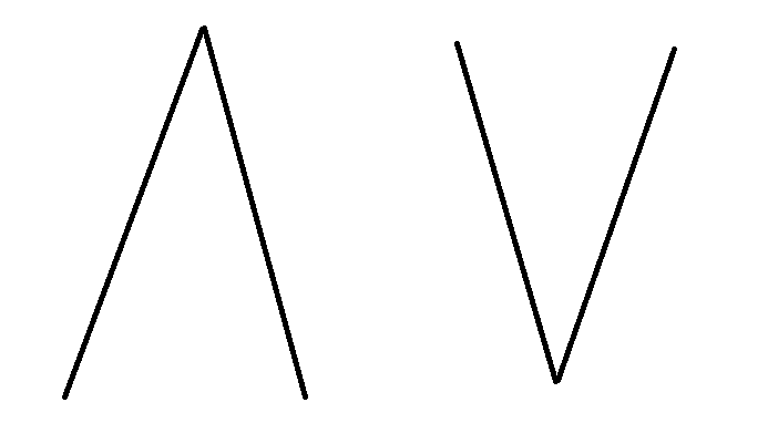Для идентификации такого состояния рынка достаточно 3 точек – 2 High и 1 Low, или наоборот – 2 Low и 1 High. Это выглядит как латинская V или перевернутая V.