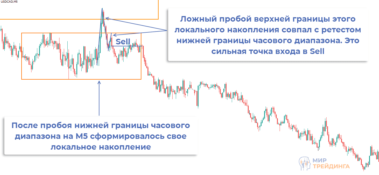 - для торговли нужно получить закрепление после отмены пробоя. Как и в случае с предыдущим типом сигналов точку входа желательно уточнять на младших временных интервалах,