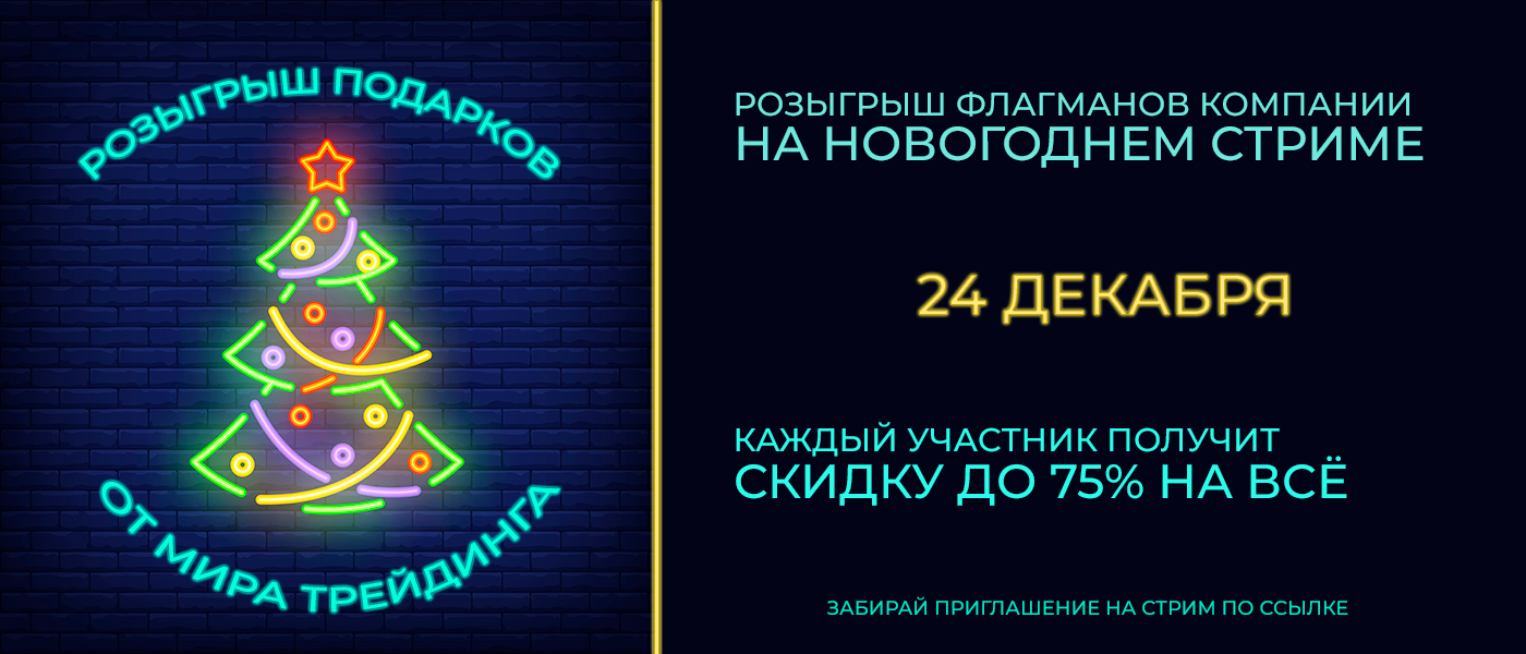В честь новогодних праздников наша команда подготовила для вас веселый тест “Какой вы трейдер?”, после прохождения которого вы получите в подарок методичку "Точка входа" и приглашение на праздничный стрим! Каждый участник стрима получит скидку до 75% на все категории обучения и возможность забрать один из 4 главных призов на свой выбор:
